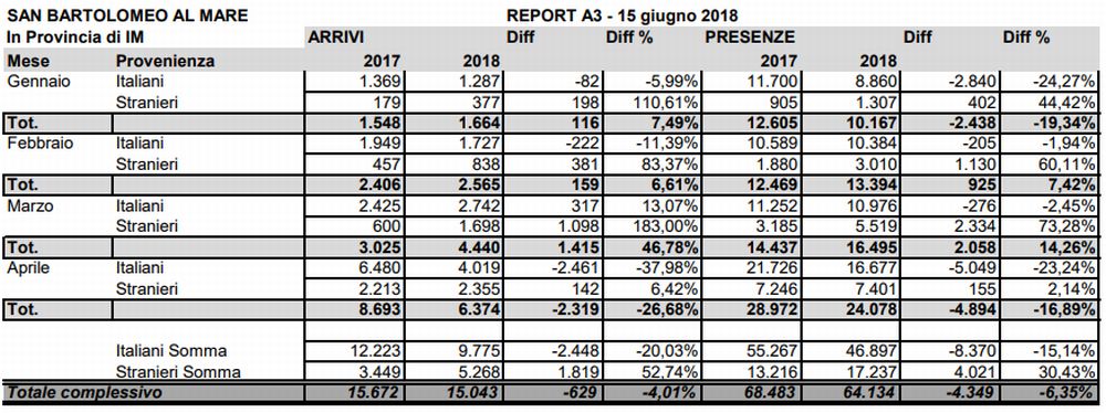 Segno meno per l’afflusso turistico anche per San Bartolomeo al mare. Dopo Diano Marina anche la seconda località turistisca del Golfo Dianese segna un brusco stop anche se a livello molto inferiori.
