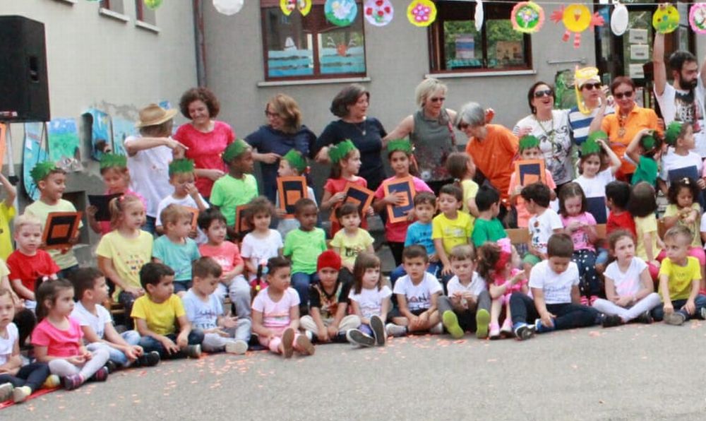 Venerdì 8 Giugno, in occasione della festa di fine anno, nel cortile della scuola dell’infanzia “G. Sarina”, i bambini e le bambine si sono esibiti con canti e drammatizzazioni degli ambienti di Pezzettino il personaggio creato di Leo Lionni.