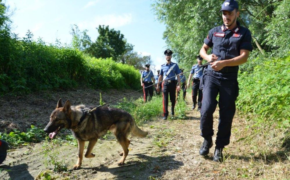 Nella foto in alto e in questa i carabinieri in azione nel parco dello Scrivia di Castelnuovo con i cani antidroga durante l’operazione
