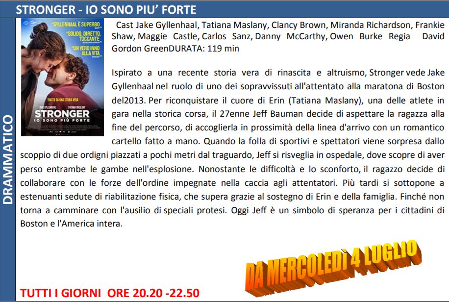 Ben 9 film in prima visione questa settimana al Megaplex Stardust di Tortona. Trame e orari 5 Lug, 2018 | Cinema | Arriva il caldo e da questa settimana si va al cinema solo di sera al Megaplex Stardust di Tortona, ma i film in prima visione sono tanti: ben 9. Di seguito tutte le trame e gli orari. Download QR 🠋 Correlati