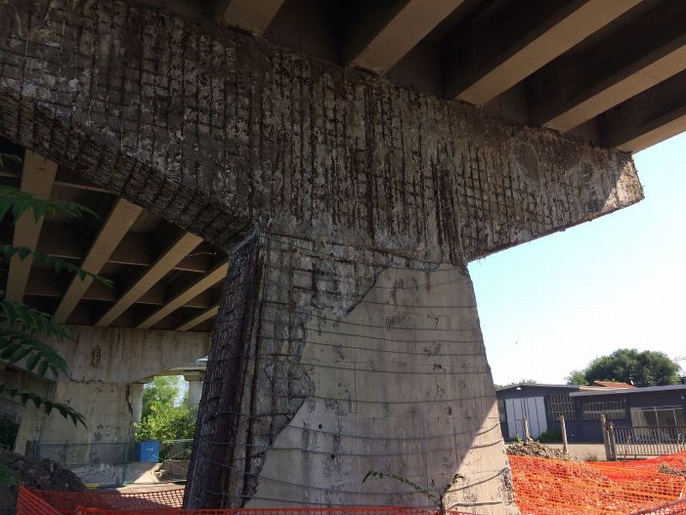 Un’altra immagine del pilone a pezzi che si vede in alto