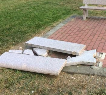 Come si può vedere dalle immagini il marmo è stato distrutto ed è stato ridotto in molti pezzi.