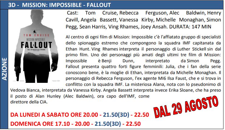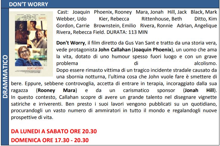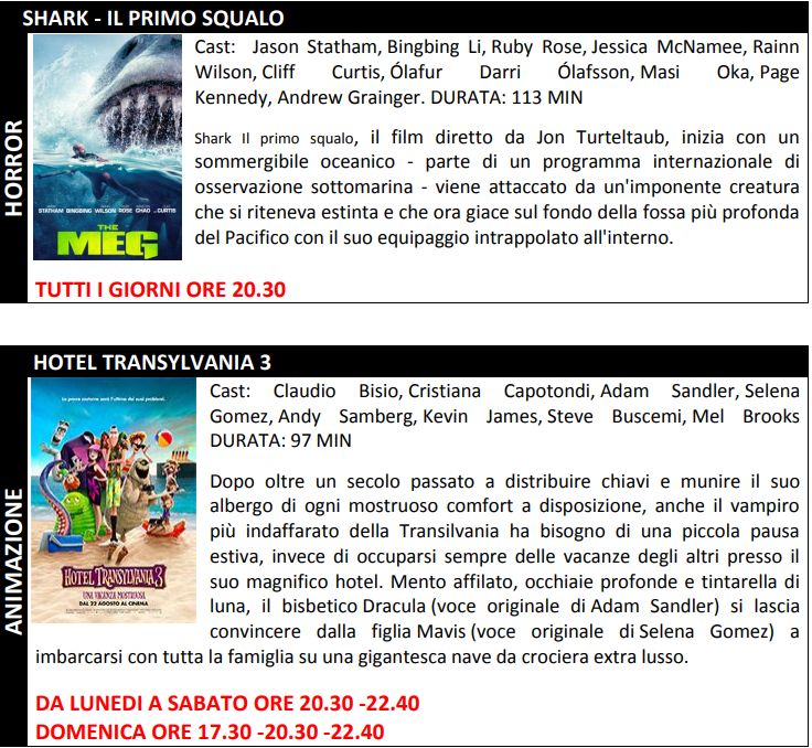 Di seguito, trame ed orari dei film in programmazione.