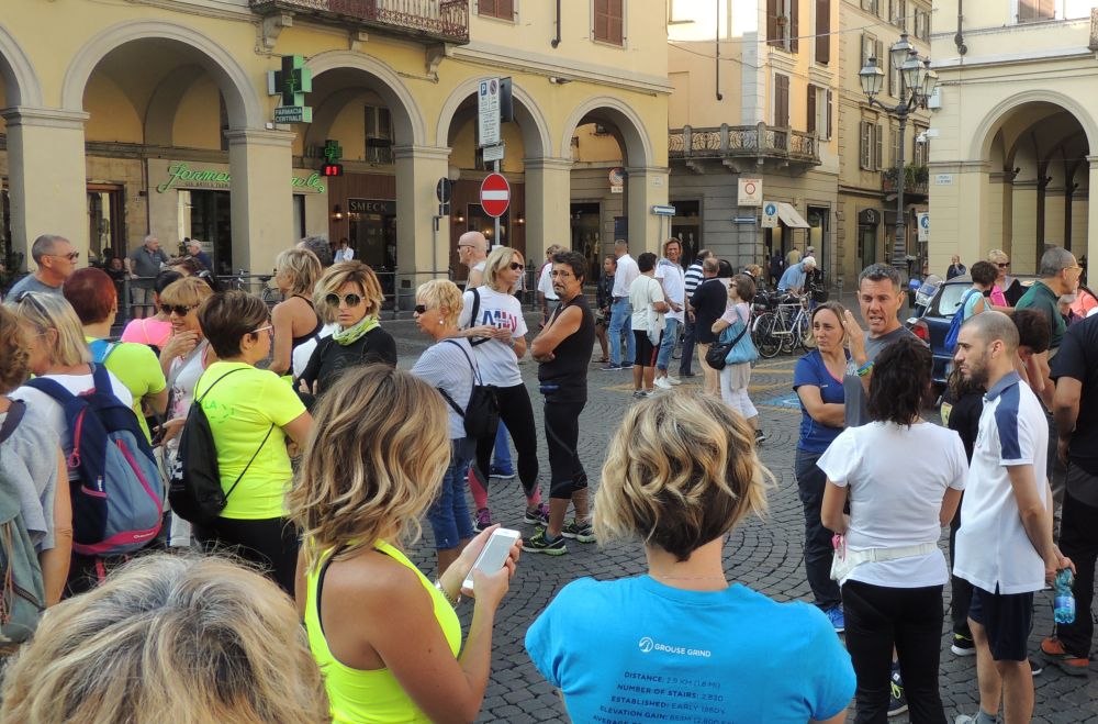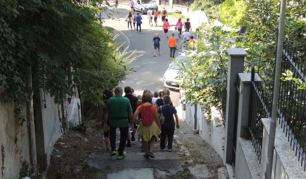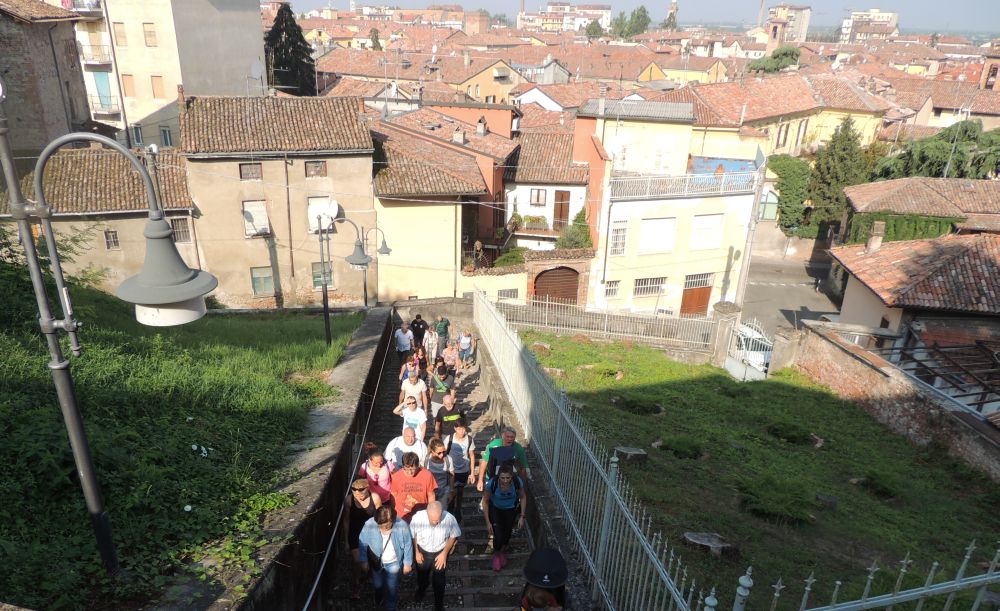 Si è passati da piazzale Loreto salendo lungo la scalinata che porta in via Galileo Galilei poi da qui, prima della Lucciola alla scalinata che porta sopra lucciola e Viale milite ignoto poi si è scesi giù in via Giulia poi per poi risalire al Lavello lungo quella che è considerata la scalinata più lunga ripida e dura di Tortona quella appunto del bosco del lavello che porta in cima a viale milite ignoto.