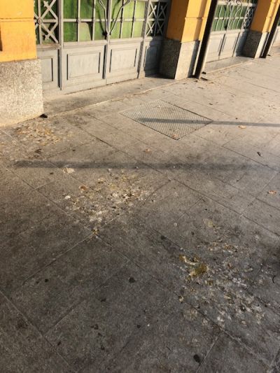 La causa principale é il guano di piccione che imperversa in ogni angolo. Basta sollevare gli occhi e sotto la tettoia dell’ingresso altra cacca di piccione che si accumula in ogni dove. Passano i giorni, ma di provare a rimuoverlo non se ne parla, con la conseguenza che le montagnole di m. aumentano. Lo stesso accade sui binari e relative passerelle, dove i passeggeri devono stare attenti a dove mettersi per non venire bombardati dall’alto.