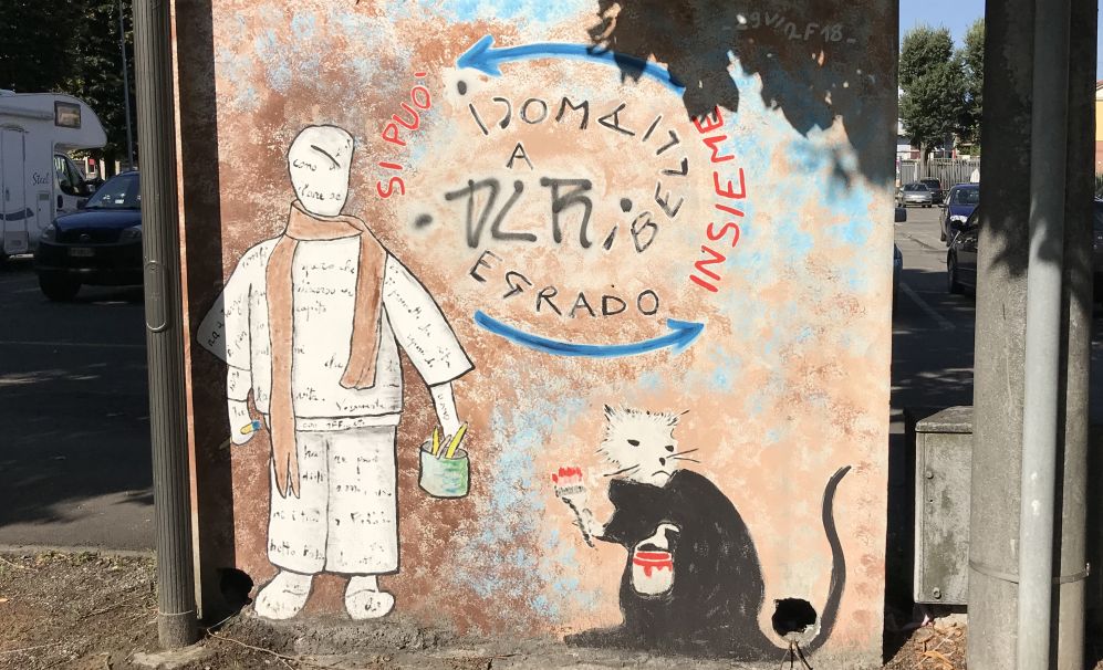 “Insieme si può vincere il degrado – mi ha detto qualche tempo fa Fabrizio Falchetto quando iniziò a dipingere i muri di Tortona partendo da piazza Milano – inoltre noi crediamo che se il posto dove vivi è bello, allora anche l’umore diventa più positivo e.. ti viene voglia di fare. E se pensi bene, ti viene voglia di fare bene, e poi credo che la gente vive meglio se abita in un bel luogo colorato piuttosto che in uno freddo e anonimo. E’ come in un girotondo che attiva un circolo virtuoso e noi abbiamo dato il nostro piccolo contributo in questo modo perché è l’unico che consociamo che possa rallegrare Tortona.”
