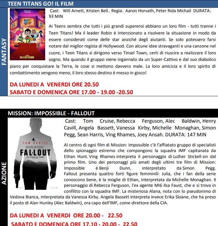 Se non lo avete ancora visto non perdetevi l’ultimo film di Tom Cruise “Mission Impossible – Fallout” due ore e mezzo di pura adrenalina che vi lascia incollati alla poltrona del cinema, con scene mozzafiato e una trama imprevedibile.