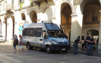 Esemplare in servizio d’ordine per la sicurezza della città, garantito dalla Questura di Alessandria che oltre ad aver bloccato a l’ingresso in corso Leoniero e il parcheggio in piazza Duomo, hanno praticamente interdetto l’accesso ai mezzi in via Pellizzari dove si trovava la sede di Casapound.