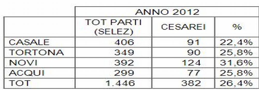 Il documento “ASL AL valutazione sulle performance 2013” evidenzia come il punto nascita di Novi nel 2012 presentasse la percentuale più alta di tagli cesarei di tutto il distretto: 31,6%, contro il 25,8% di Tortona.