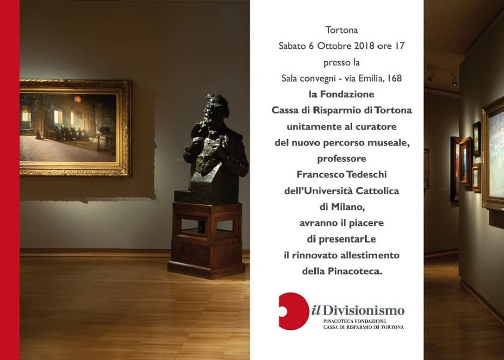 Un appuntamento culturalmente importante quello in programma sabato 6 ottobre 2018 alle ore 17.00 presso la Sala convegni della Fondazione Cassa di Risparmio di Tortona in corso Leoniero dove è prevista la presentazione nuovo percorso espositivo del Museo del Divisionismo a cura del prof. Francesco Tedeschi dell’Università Cattolica di Milano.