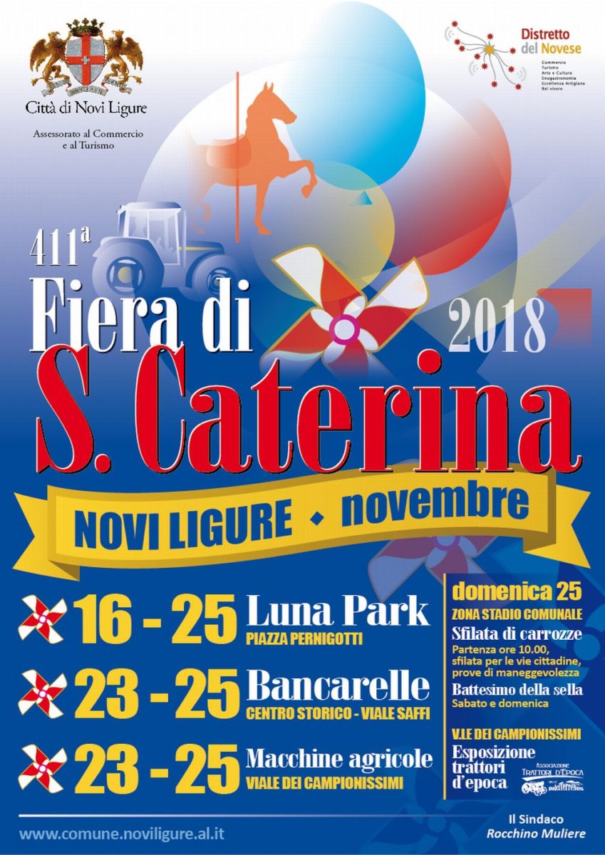 Dal 23 al 25 novembre a Novi Ligure bancarelle nel centro storico e in viale Saffi, esposizione di macchine agricole nel viale dei Campionissimi; sfilata di carrozze e battesimo della sella i occasione della Fiera di Santa Caterina.