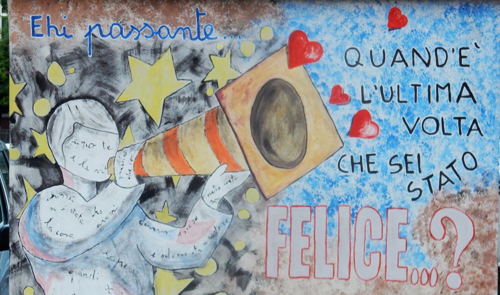 Da non dimenticare l’ulteriore edicola, prospicente Corso Repubblica, dove è presente un murales che invita il passante a riflettere sulla frenesia della vita e sul valore della felicità.