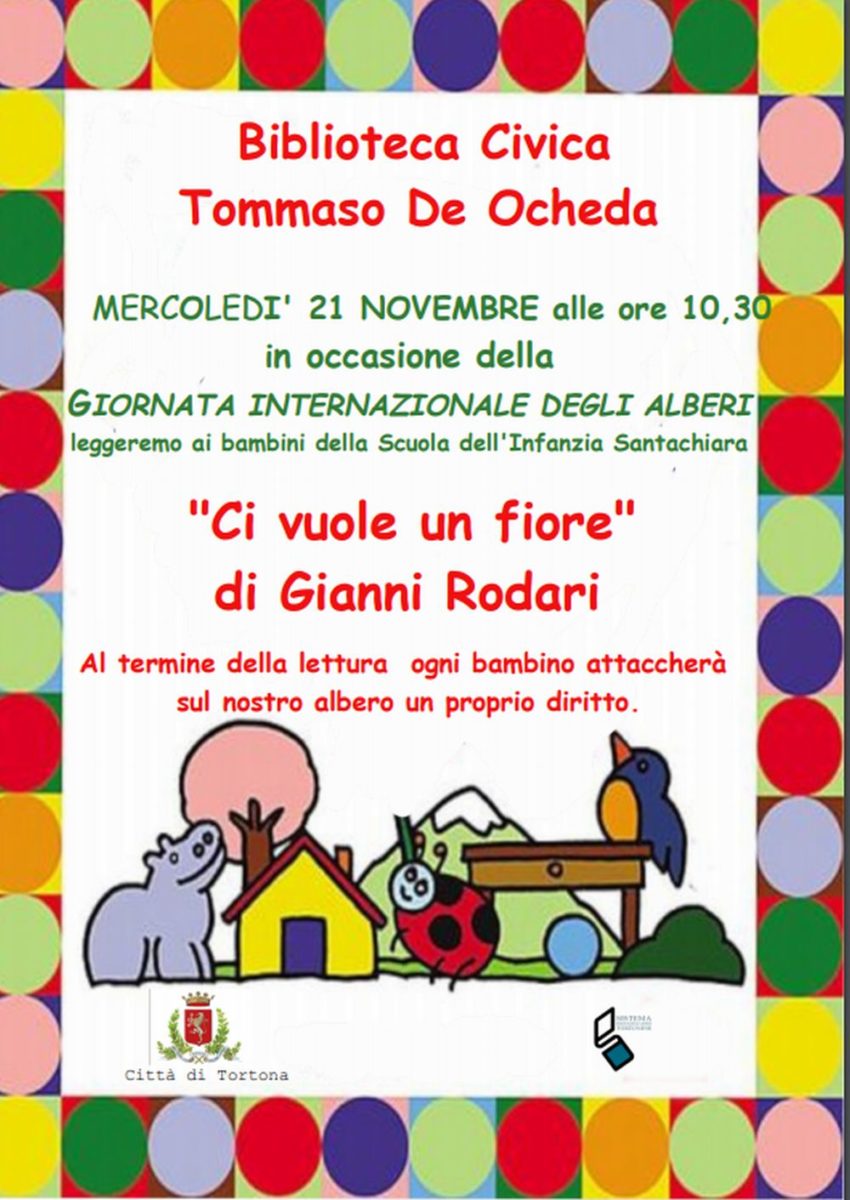 La Biblioteca Civica di Tortona, intende celebrare queste ricorrenze dedicando ai più piccoli la lettura del racconto “Ci vuole un fiore” di Gianni Rodari, mercoledì alle ore 10,30.