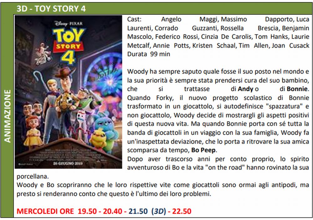 Mercoledì al Megaplex Stardust esce Toy Story 4 26 Giu, 2019 | Cinema | In prima visione alla multisala di Tortona Download QR 🠋 Correlati