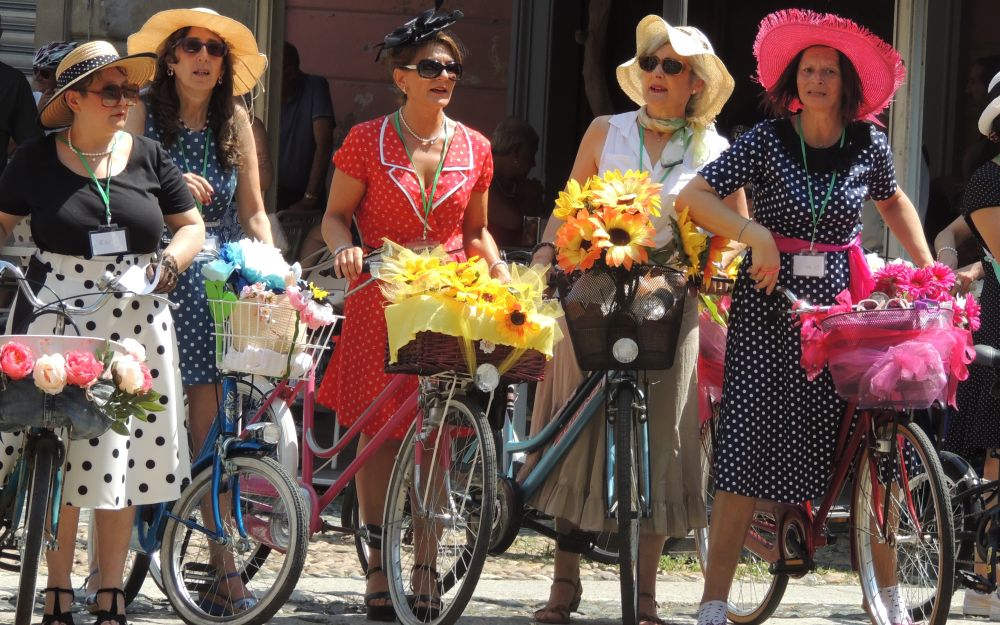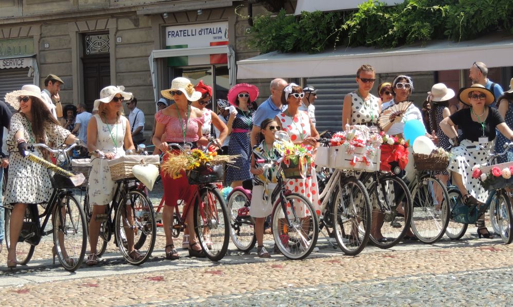 Per la chi non la conosce consiste nell’indossare vestiti d’epoca (o che sembrino tali) fino agli anni sessanta, salire su una bicicletta e girare per le vie di Tortona.