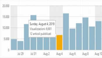 Per tutti questi motivi, le visite sul nostro giornale ad agosto, calavano rispetto agli mesi. Ecco perché quando il nostro ingegnere informatico ci ha trasmesso il report degli ultimi dieci giorni,come potete vedere dal grafico, siamo rimasti davvero sorpresi: per i risultati positivi che hanno superato la media di 11 mila visite al giorno, con una media che va ben oltre le 300 mila visite al mese, ormai consolidate dal giornale.