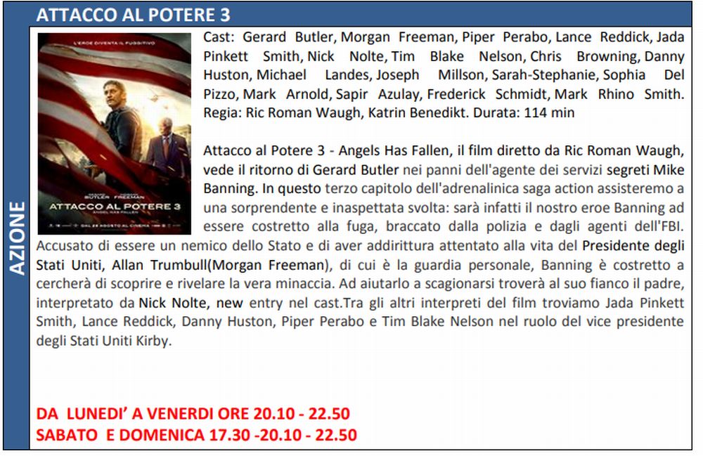 Di seguito tutte le trame e gli orari del film in programmazione nel week end.