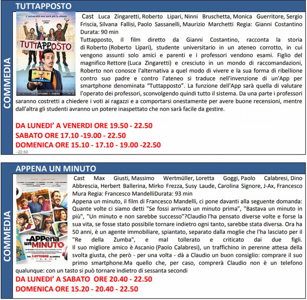 Di seguito, comunque, ecco tutte le trame e gli orari dei film in programmazione