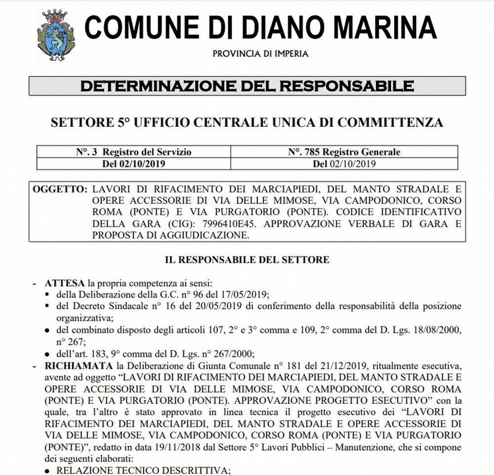 Sì, avete letto bene: a Diano Marina capita anche questo, come potete vedere dallo screenshot della delibera che pubblichiamo a fine articolo.