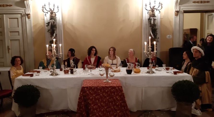 Oltre 130 persone hanno voluto partecipare alla rievocazione ispirata al banchetto di nozze del 1489 di Isabella d’Aragona e Gian Galeazzo Sforza con figuranti in costume e musiche rinascimentali, cibi, letture, musica e vini leonardeschi
