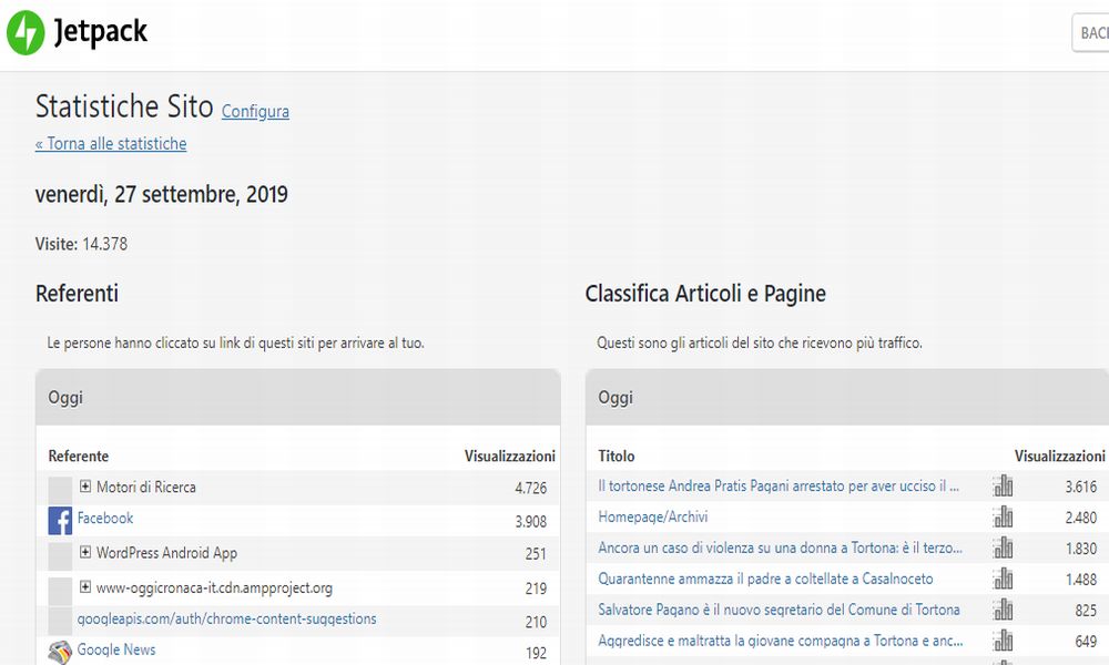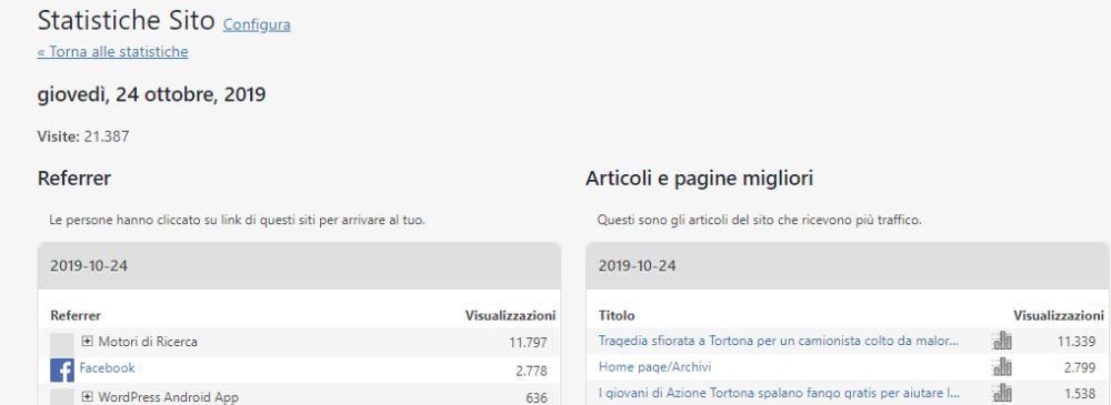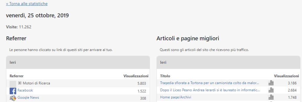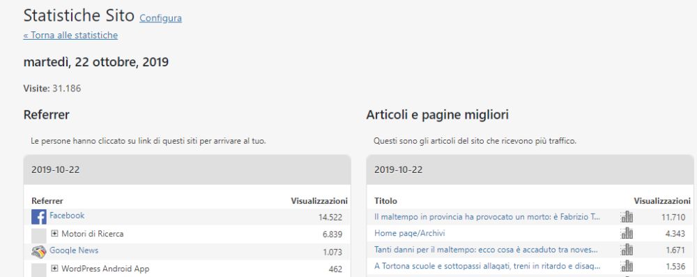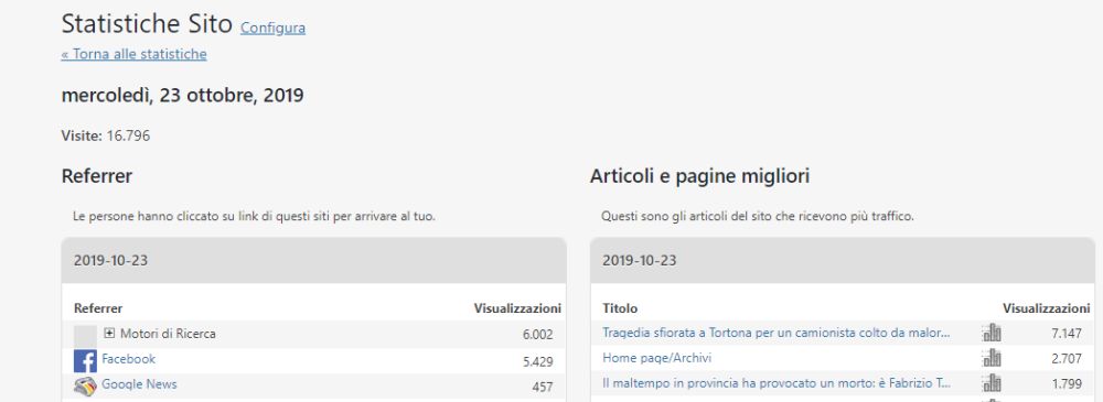 Lo scriviamo a ragion veduta, perché da anni, il contributo che fornisce Facebook in termini di visite ad Oggi Cronaca, varia da un minino di 10 ad un massimo del 27% e solo in due occasioni, nell’ultimo anno, ha superato questa soglia: il 22 ottobre (42%) e il 23 ottobre (32%) per via del maltempo quando c’era l’emergenza e i lettori cercavano notizie in tempo reale, per poi ritornare ai livelli standard e normali.