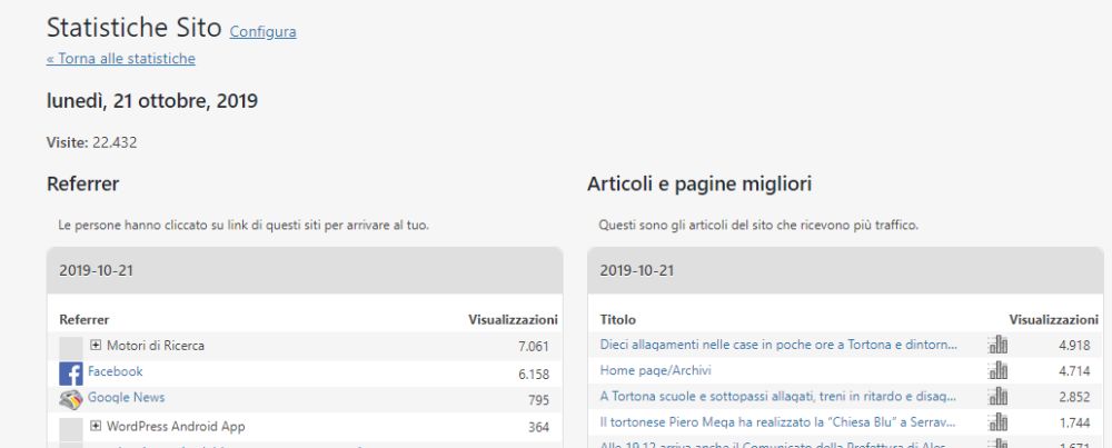 A supporto di quanto affermiamo pubblichiamo di seguito alcune tabelle sui dati di affluenza in termini di viste ad Oggi Cronaca e sul contribuito fornito da Facebook prima e dopo l’emergenza maltempo.