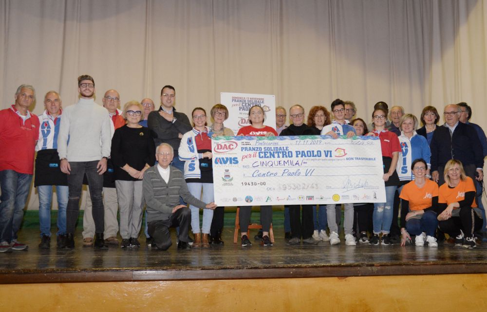 In fin dei conti è solo questione di solidarietà. Quella vera, autentica, che “viene dal cuore”, come ha detto don Cesare, il direttore del Centro Paolo VI, a cui la comunità pontecuronese ha offerto un assegnone (finto) di 5.000 euro (veri), alla fine del pranzo benefico di domenica 17 novembre, destinato ad un aiuto concreto all’Istituto fondato da don Remotti a Casalnoceto, gravemente danneggiato dalla recente alluvione.