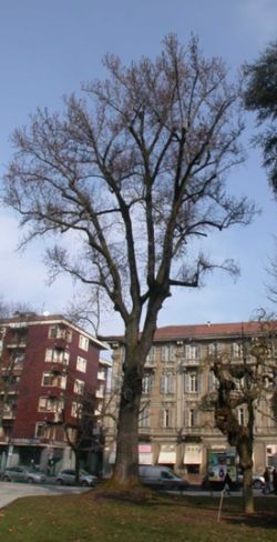 Il Liquidambar styraciflua è un albero di rilevante pregio per la tipologia di essenza e le ragguardevoli dimensioni (oltre 30 m di altezza e 130 cm di diametro del fusto), collocato nei giardini della stazione, sul lato di corso Crimea, all’altezza di via Trotti. Nei mesi scorsi è stato oggetto di accurate indagini strumentali per valutare la stabilità della pianta a seguito della presenza di una cavità interna e di diverse ampie ferite sul suo fusto. Sono stati eseguiti esami sonici, penetrometrici e delle prove di trazione dinamica, applicando un carico manuale e verificando il comportamento dell’albero. I risultati delle indagini strumentali di stabilità hanno indicato che per la messa in sicurezza della pianta e la salvaguardia della sua capacità vegetativa è necessario procedere con una serie di interventi mirati tra cui la recisione di una branca cariata e un inoculo di micorrize e funghi per il rafforzamento degli apparati radicali. Ai piedi della pianta sono stati posati 3-4 cm circa di corteccia di conifera e l’area è stata interdetta con una recinzione per impedirne il calpestio.