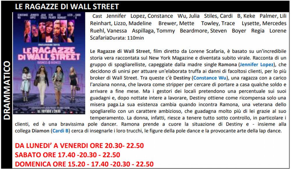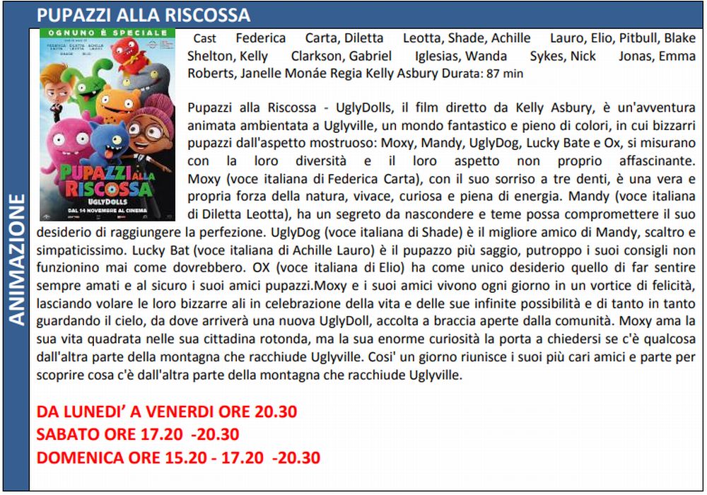 Per il resto di seguito trovate tutti gli orari e le trame dei film in programmazione questa settimana.