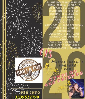 E, ad appena una decina di giorni dall’apertura, avvenuta sabato prima di Natale, i proprietari hanno preparato una serata di Capodanno davvero spumeggiante: domani sera sorprese e novità in arrivo: cenone per adulti ma con possibilità di menu bimbi, perché la festa non può e non deve essere solo per i grandi. Poi si balla e si canta fino al mattino con cornetti e cappuccino!