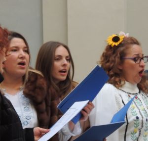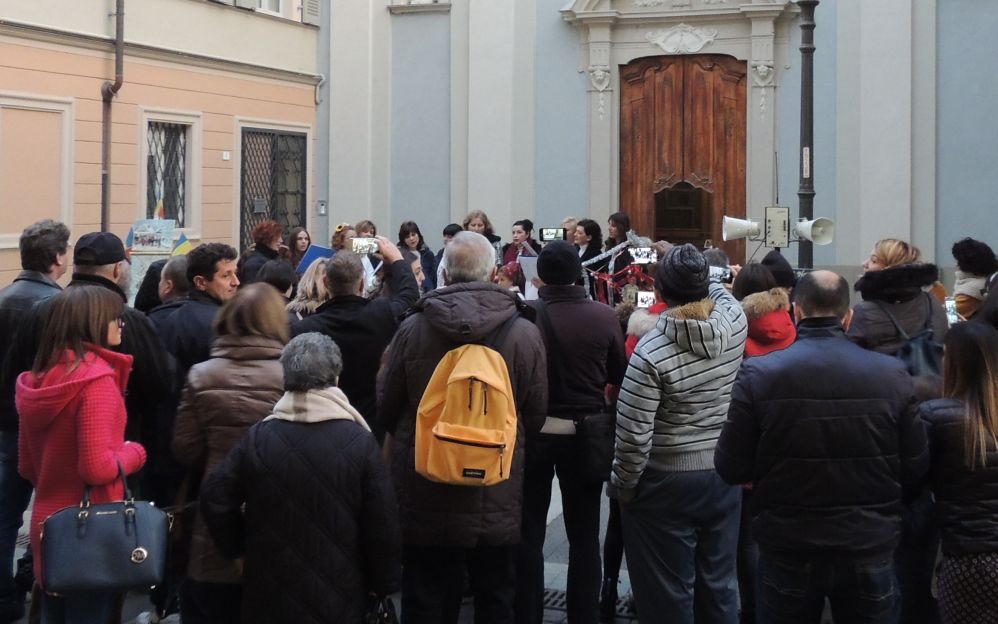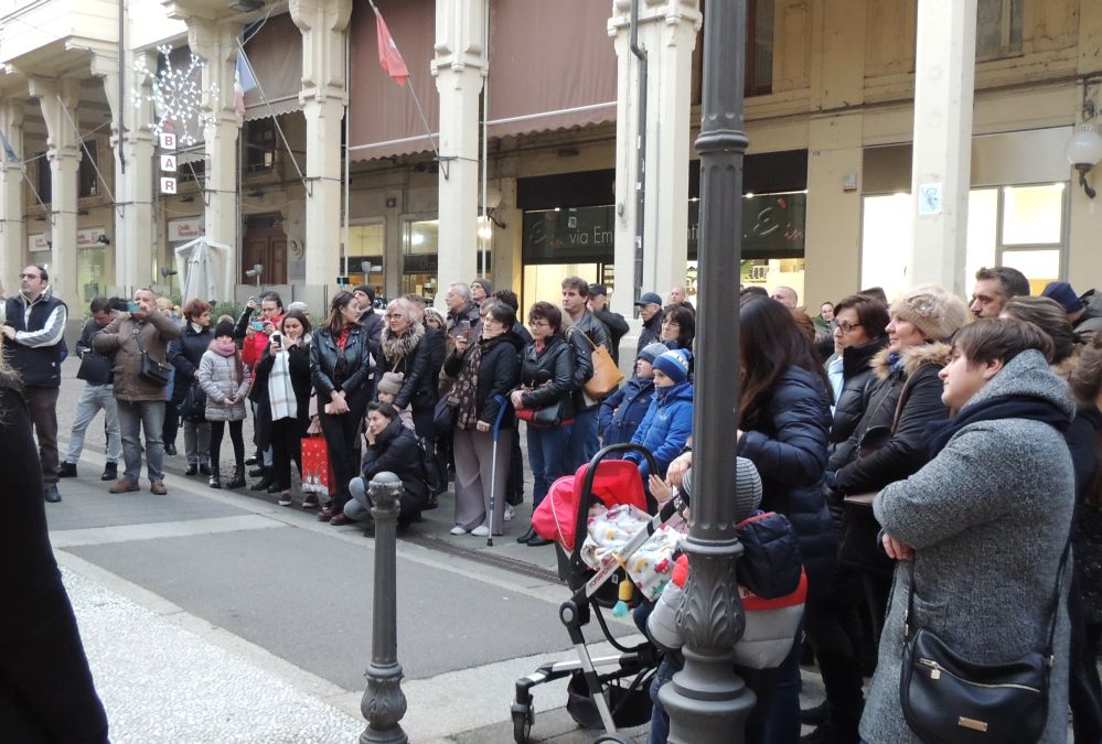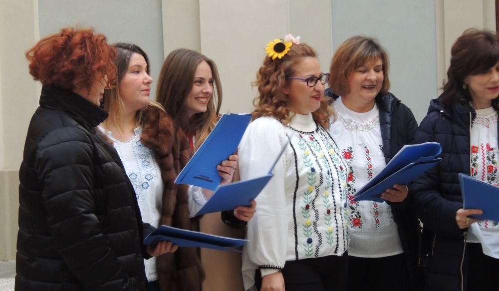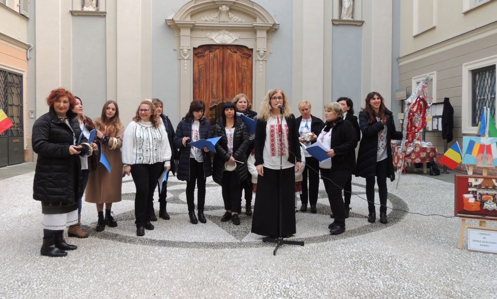 Terzo e ultimo appuntamento alle 16,30 sul sagrato della chiesa San Michele “Colinde” cori natalizi della tradizione rumena con una quindicina di donne rumene che davanti ad un folto pubblico e alla presenza del Sindaco Federico Chiodi e vestite con tradizionali abiti rumeni si sono esibite con canti tradizionali, non prima però di aver dedicato un minuti di silenzio al clochard rumeno Fanika Barani deceduto dal freddo il giorno prima.