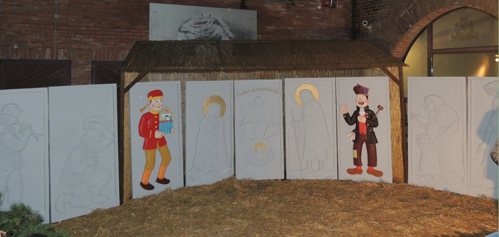 Come potete vedere dalle immagini sotto, però, si è trattato di un presepio molto particolare che è stato più che altro un inno alla bravura del burattinaio tortonese Peppino Sarina: le uniche due figure colorate, infatti, sono due burattino che fungono da bue ed asinello: Pampalughino, il personaggio creato da Sarina e Tascone burattino non della zona adottato e valorizzato nel tortonese come da nessun’altra parte.