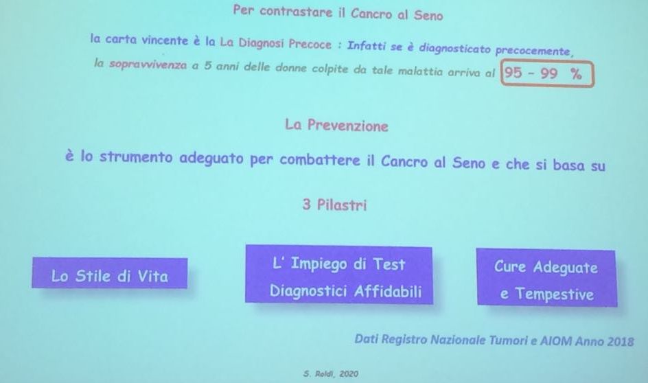 “Se ti scoprono un tumore non sei sfigata, ma fortunata perché così, si potrà curare e guarire perché la scoperta precoce di un tumore alla mammella consente di guarire nel 95% dei casi”. Una percentuale che scende più passa il tempo della diagnosi.