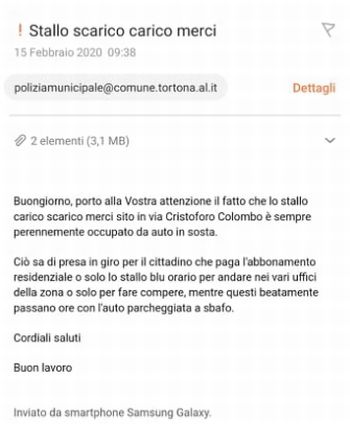 Di seguito la email invita al comando dei vigili, ma credo non sia servita a nulla.