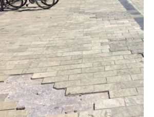 Era davvero così difficile mette un po’ di cemento o reperire qualche piastrella simile invece di lasciare i buchi?