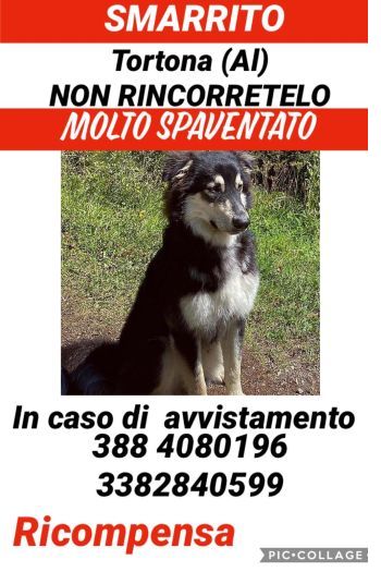 ho smarrito il cane mercoledì mattina ore 10 in centro Tortona e, a seguito di un incidente lo hanno investito e dalla paura è scappato (non si lascia avvicinare da nessuno a parte noi padroni è molto pauroso soprattutto delle persone sconosciute, quindi non rincorretelo, chiamate subito noi oppure gli organi preposti).