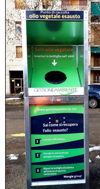 Con lo scopo di incrementare la raccolta differenziata dei materiali recuperabili e di offrire un ulteriore servizio ai cittadini, Gestione Ambiente S.p.A., infatti, ha installato sul territorio comunale appositi punti di raccolta, all’interno dei quali i cittadini potranno conferire gratuitamente, racchiuso in bottiglie di plastica, l’olio vegetale esausto.