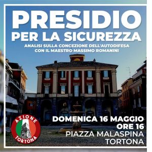 “Nelle ultime settimane il centro storico di Tortona è divenuto luogo di disordini e degrado – spiega il presidente di Azione Tortona Andrea Mantovani – in merito a questo tema abbiamo ricevuto decine di segnalazioni da parte di commercianti e famiglie preoccupate per i loro figli, a causa di piccole bande fuori controllo. Abbiamo quindi deciso di scendere nuovamente in piazza con un presidio simbolico, fissato per domenica dalle ore 16,  affinché si possa sensibilizzare l’opinione pubblica e alzare l’attenzione delle autorità su questo problema che continua a ripetersi”.