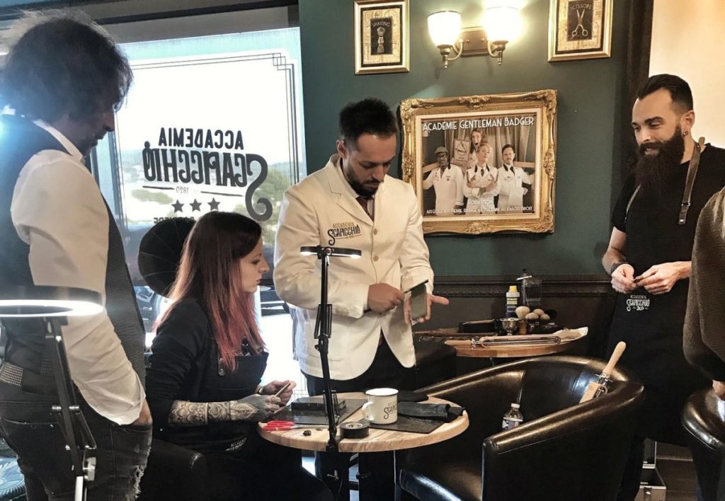 “Molte coltellerie – conclude – mi mandano clienti per affilare e restaurare i rasoi. Sono tecniche antichissime che ci tramandiamo utilizzando strumenti particolari: il pennellificio Omega, infatti, realizza pennelli per la barba appositamente per noi, con l’Accademia Scapicchio abbiamo abbiamo insegnato ai loro Docenti della Proraso e lo stesso Bullfrog (noto barber shop a pochi metri dal Duomo di Milano – ndr) ha fatto corsi da noi, come la Barberia Colla che ha voluto conoscermi”