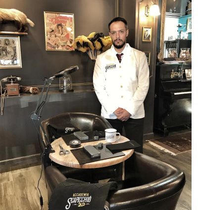 Parlare di barbiere, a questo punto, è davvero riduttivo, anche se lui svolge questa professione da quasi vent’anni e nel 2105 aveva aperto un negozio in piazza Gavino Lugano a Tortona per poi trasferirsi in corso Leoniero ma l’arte che insegna nei corsi che si svolgono in tutto il mondo, è così particolare che abbiamo deciso di lasciarne a lui l’illustrazione.