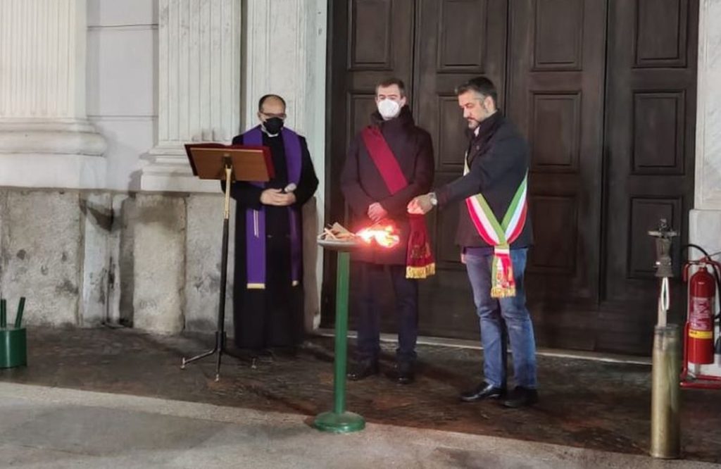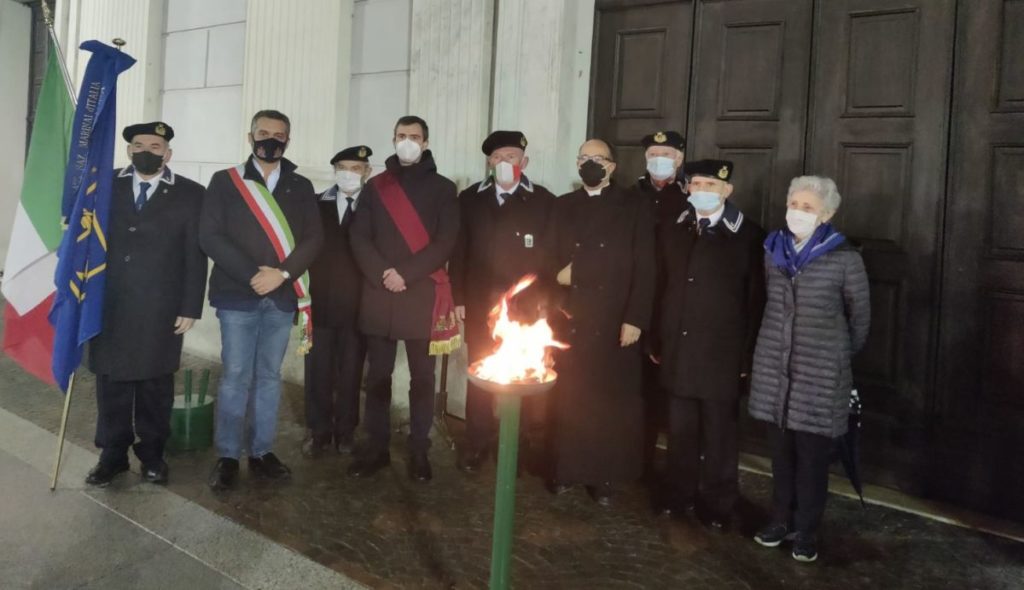 Pioveva e anche abbastanza forte, ma a Tortona certe ricorrenze, come le celebrazioni per la Festa dell’Unità Nazionale la Giornata delle Forze Armate e l’Anniversario della Vittoria, non possono essere rimandate e così questa sera, verso le 19,30 in piazza Duomo, come da programma il Sindaco Federico Chiodi accompagnato dal Presidente del Consiglio Comunale Giovanni Ferrari Cuniolo e dai rappresentanti delle associazioni militari e dei combattenti si sono dati appuntamento davanti alla Cattedrale di Santa Maria Assunta per per accendere, come da programma, il fuoco sacro nell’ambito del centenario del Milite Ignoto.