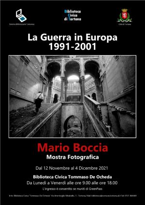 Una bella iniziativa culturale del Comune di Tortona che venerdì 12 novembre, presso la Biblioteca Civica “Tommaso de Ocheda” in via Ammiraglio Mirabello, inaugura , la mostra fotografica “La Guerra in Europa 1991-2001” con l’esposizione delle foto realizzate dal reporter Mario Boccia durante il conflitto nell’ex Jugoslavia, guerra civile che proseguì per tutto l’ultimo decennio del secolo scorso.