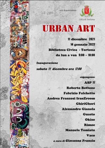 Sabato 11 dicembre alle ore 17, presso la Biblioteca Civica “Tommaso De Ocheda” di Tortona, si inaugura la mostra “Urban Ar”t, curata da Giovanna Franzin e patrocinata dal Comune. L’esposizione presenta opere degli artisti ASP11, Roberto Bottone, Fabrizio Falchetto, Andrea Franzosi franZroom, GhiriGhori, Alessandro Gianola, Guasto, Okiso, Rimoe, Manuela Tomiato e Vaco.
