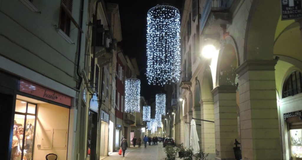 Luminarie spettacolari, mai viste prima a Tortona, di cui vi proponiamo le immagini partendo da via Emilia Nord ma vi invitiamo a vederle dal vivo, a venire in città, nel centro storico e ammirare questa bellezza e quanto sia suggestiva Tortona tutta illuminata perché guardare qualcosa in fotografia e bello, ma da vivo è tutta un’altra cosa.