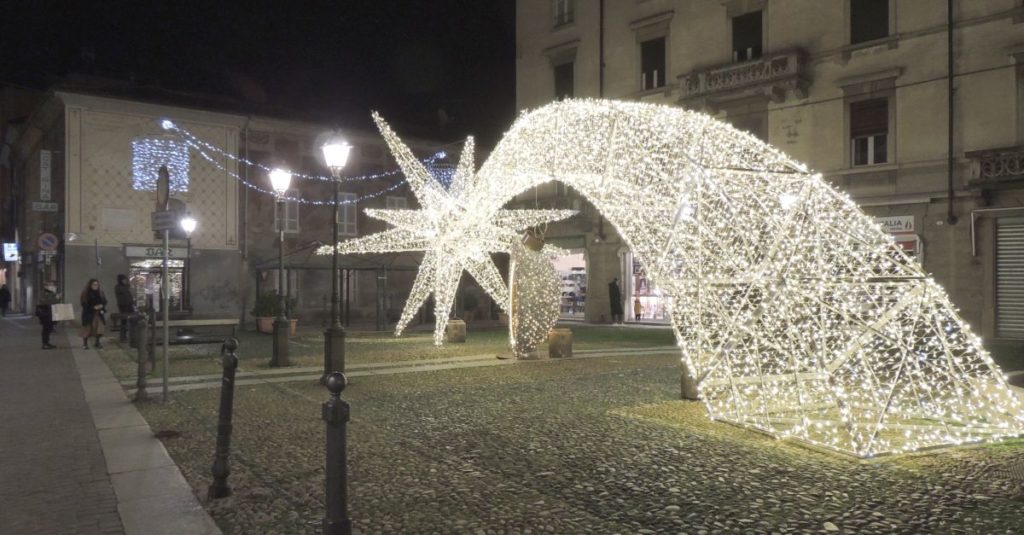 Sono solo soltanto due delle tante composizioni di luce che il Comune di Tortona ha realizzato per le feste natalizie con lo scopo di festeggiare il Natale e richiamare gente nel centro storico per valorizzare Tortona ma anche il Commercio.