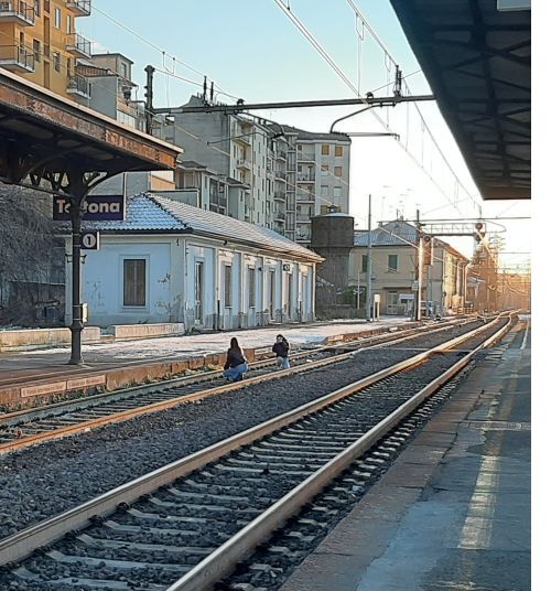 “Mi permetto di inviarle questa immagine che si commenta da sola – ci scrive la nostra lettrice – e risale alle 16.50 circa. Ho cercato  di convincere le due ragazze ad andare via di lì, ma mi hanno riso in faccia. Ho cercato invano la polizia ferroviaria, ma ormai ha un’altra sede.  Mentre noi adulti ci dibattiamo tra le varie direttive ministeriali per mandare i nostri figli a scuola, ci vacciniamo per poter lavorare e, magari non ammalarci, la società fuori è questa. Provo molto disappunto. È molto triste vedere che questi ragazzi hanno  bisogno di questo per apparire.”