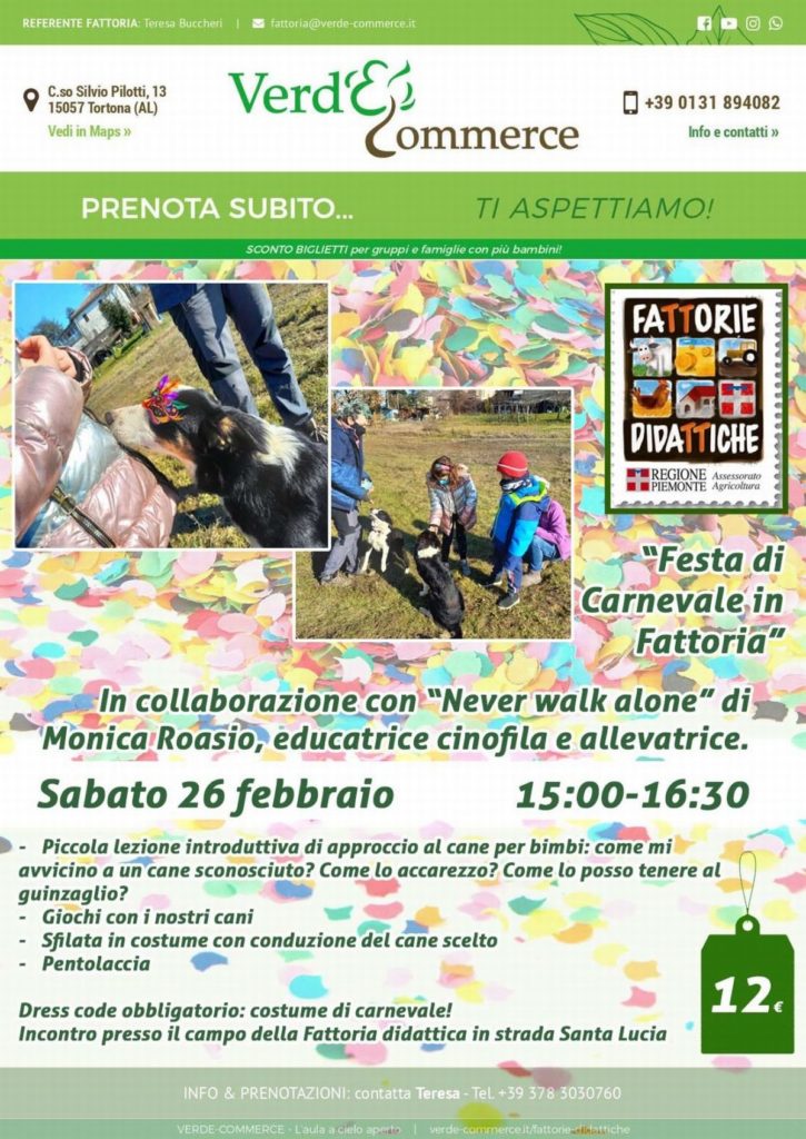 Festa di carnevale domani, sabato 26 febbraio, a Tortona alla fattoria didattica di Verde Commerce in corso Pilotti 13.