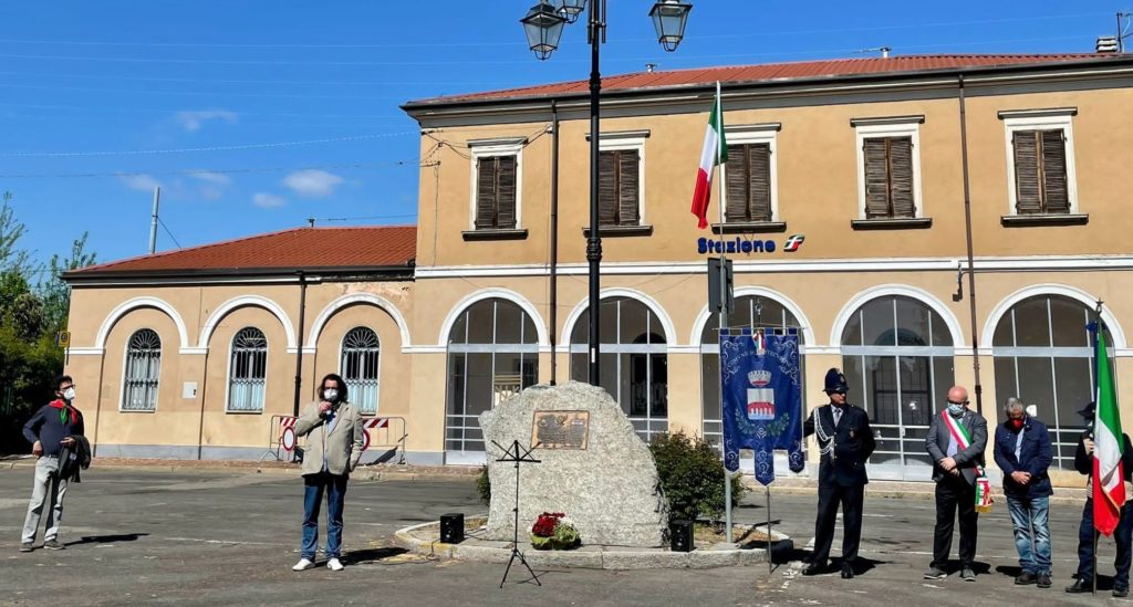 Dopo la preghiera e la benedizione alla corona data dal parroco don Loris Giacomelli, la parola è passata ad Elisa Torlasco, che ha ricordato il parallelismo storico fra il Risorgimento e la Resistenza, movimenti popolari molto simili per il forte anelito alla libertà, ma diversi per l’estrazione sociale dei combattenti. Elisa ha rimarcato il ruolo delle donne nell’ambito della Resistenza, in particolare delle “staffette”, occhi e orecchie dei partigiani, e ha letto una significativa testimonianza di Teresa Vergalli “Annusca”, staffetta partigiana in provincia di Reggio Emilia, tratta dall’antologia “Vite partigiane”, Quodlibet, 2016.