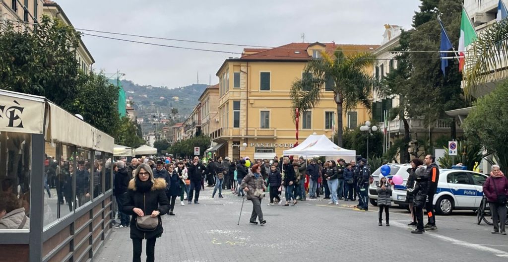 Bagno di folla per l’anticipo del carnevale a Diano Marina organizzato dal Comune con la collaborazione di Famia Dianese. Tanta gente nella piazza del Municipio oggi pomeriggio, sabato 18 febbraio per il carro che ha sfilato per le vie del centro per la gioia di tanti bambini molti dei quali provenienti anche da fuori: il ponte di carnevale, infatti è stata l’occasione per richiamare in città tanti turisti o possessori di seconde case.