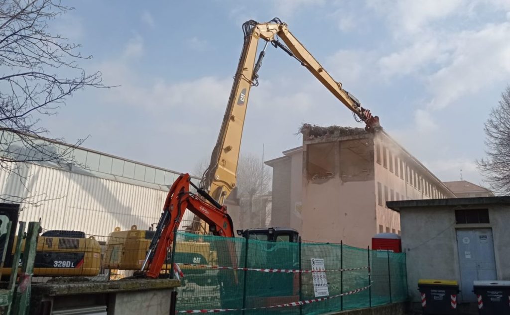 E’ iniziata questa mattina, lunedì 6 marzo, giorno del Santo Patrono la demolizione del complesso scolastico dismesso di viale Kennedy, nel quartiere San Bernardino a Tortona, che ospitava la scuola primaria e la secondaria di primo grado, edificio da tempo dichiarato inagibile.
